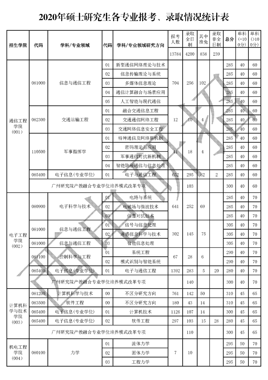 原文标题:2020年硕士研究生各专业报考、录取情况统计表