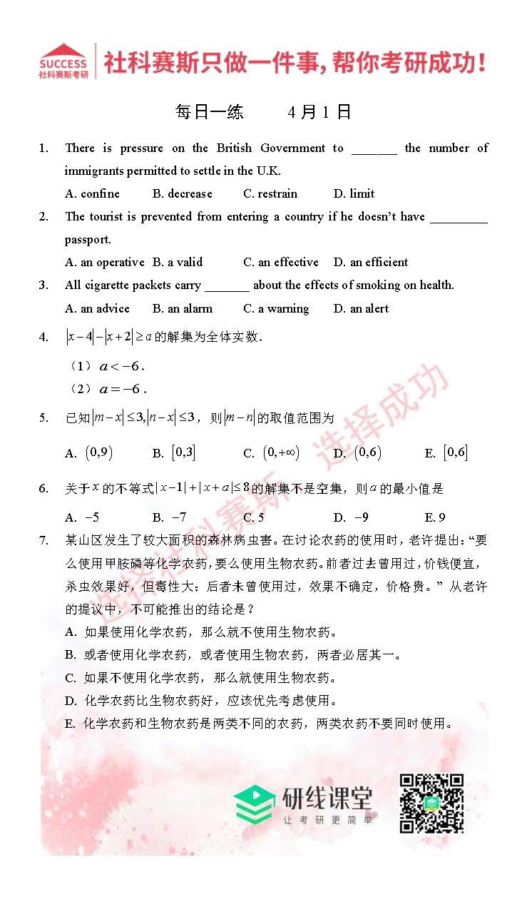 2021管理类联考4月1日每日一练及答案