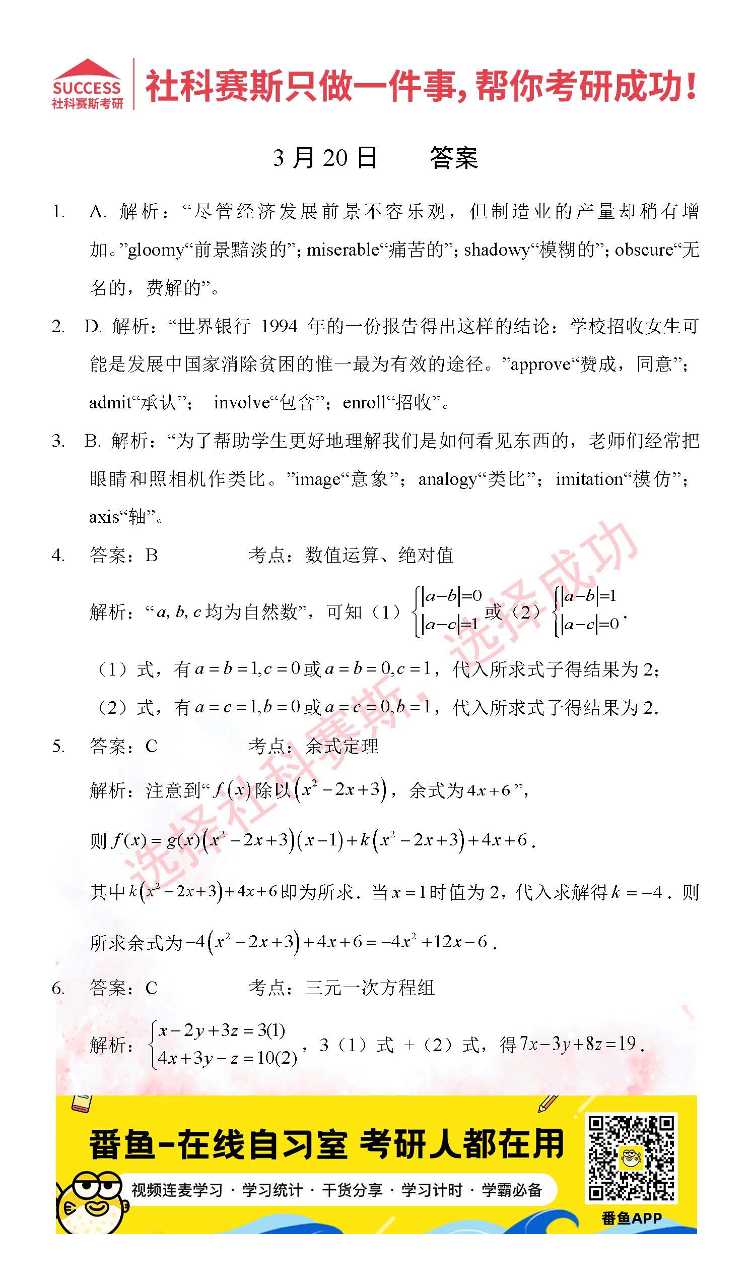 以上就是社科赛斯考研网小编为大家整理2022考研每日一练:3月20日管理类联考每日一练及答案的全部内容,希望各位考生坚持利用起来,更多每日一练内容请持续关注社科赛斯考研网