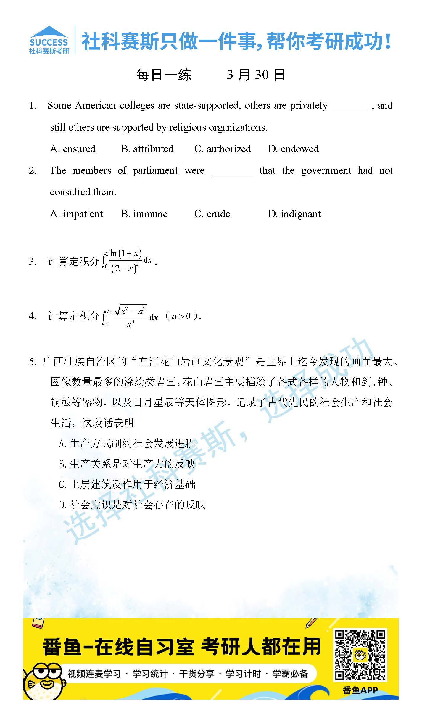 以上就是社科赛斯考研网小编为大家整理2022考研每日一练:3月30日管理类联考每日一练及答案的全部内容,希望各位考生坚持利用起来,更多每日一练内容请持续关注社科赛斯考研网