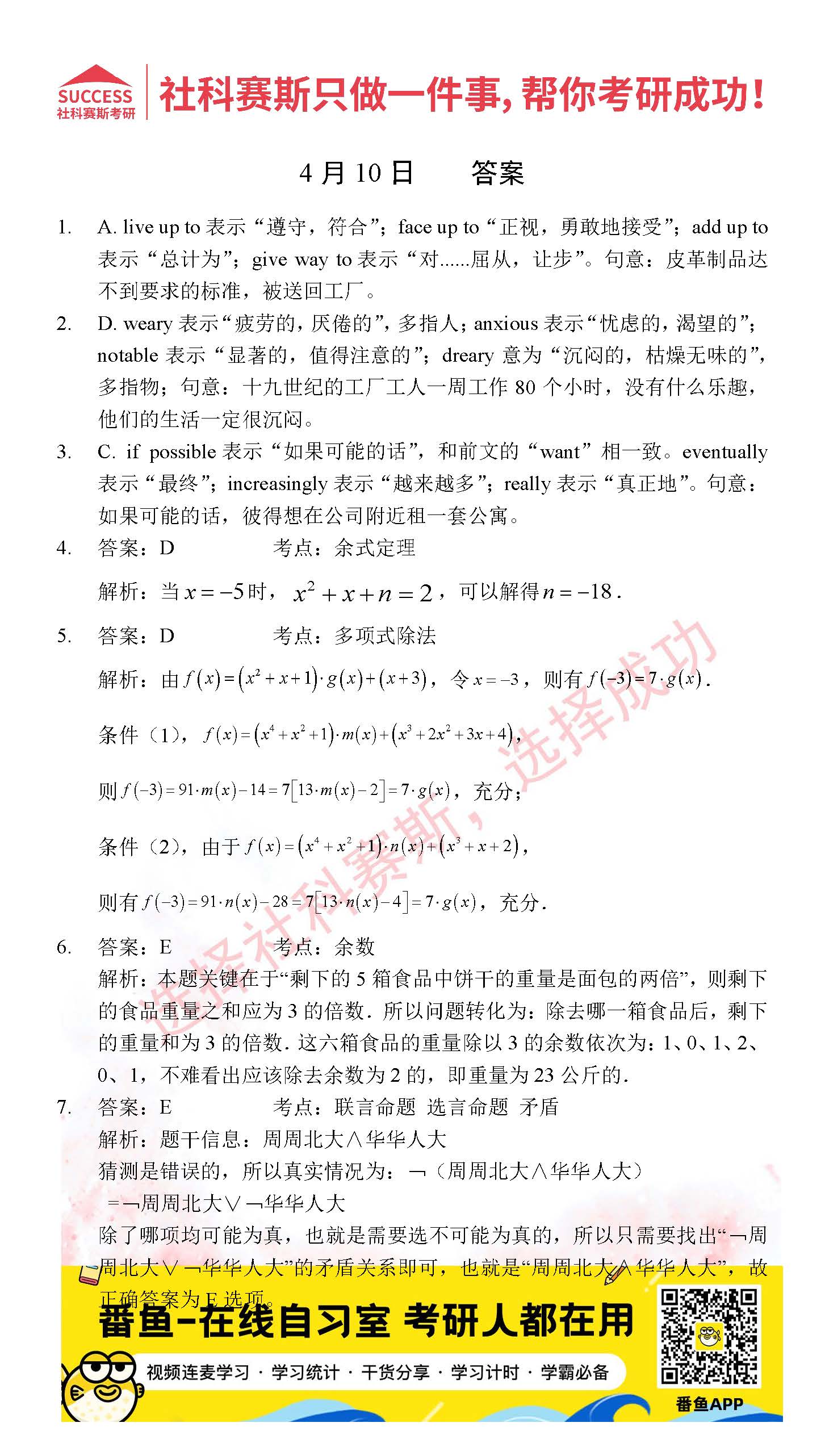 以上就是社科赛斯考研网小编为大家整理2022考研每日一练:4月10日管理类联考每日一练及答案的全部内容,希望各位考生坚持利用起来,更多每日一练内容请持续关注社科赛斯考研网
