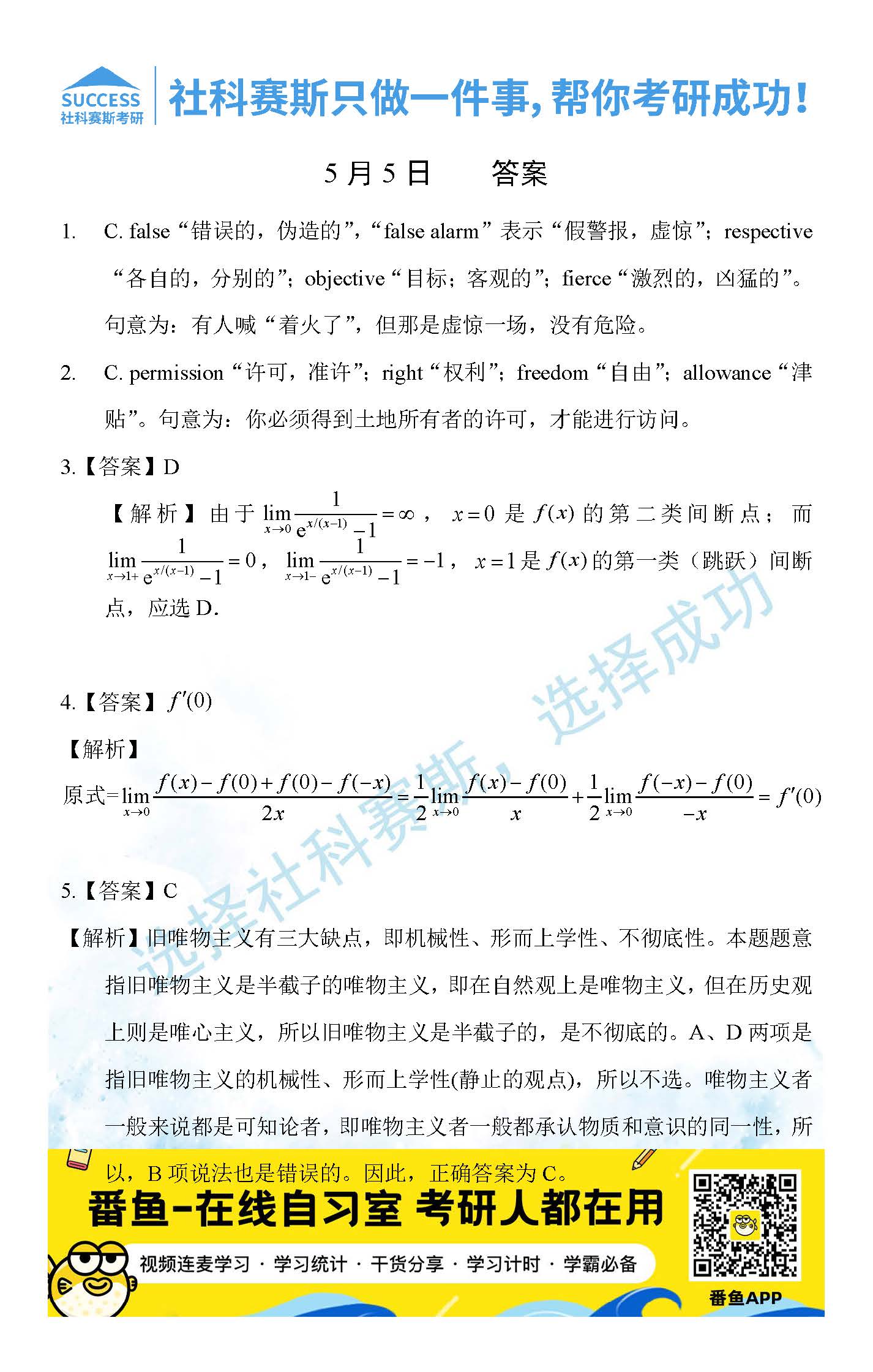 以上就是社科赛斯考研网小编为大家整理2022考研每日一练:5月5日管理类联考每日一练及答案的全部内容,希望各位考生坚持利用起来,更多每日一练内容请持续关注社科赛斯考研网