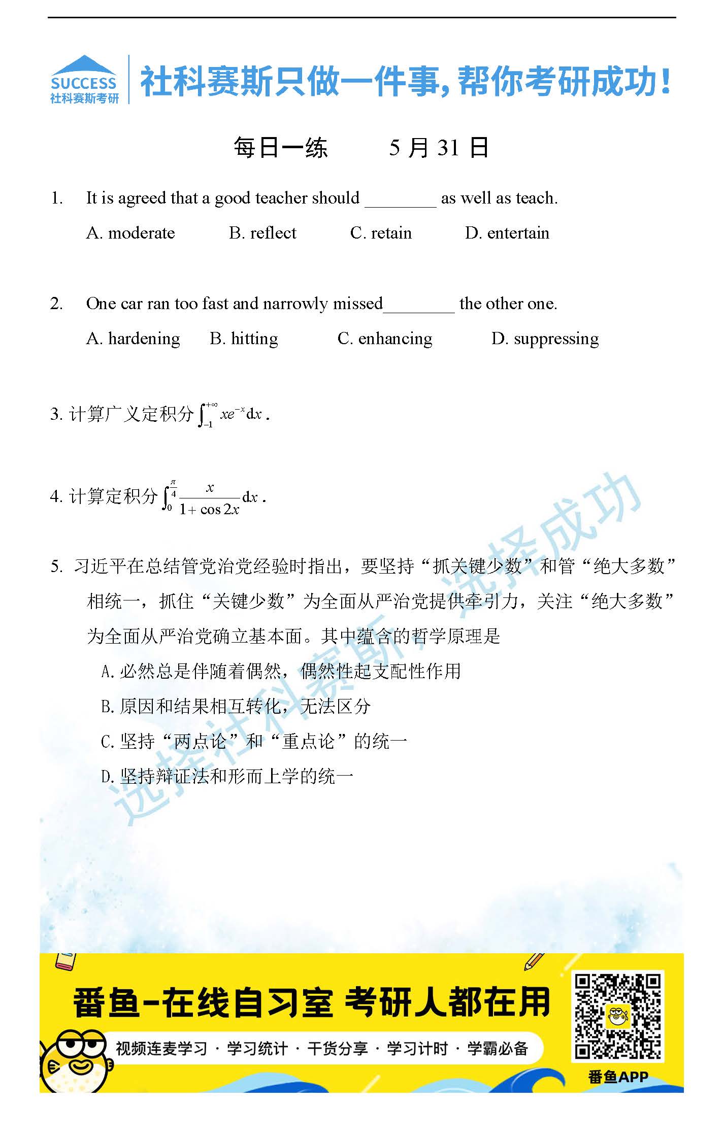 以上就是社科赛斯考研网小编为大家整理2022考研每日一练:5月31日管理类联考每日一练及答案的全部内容,希望各位考生坚持利用起来,更多每日一练内容请持续关注社科赛斯考研网