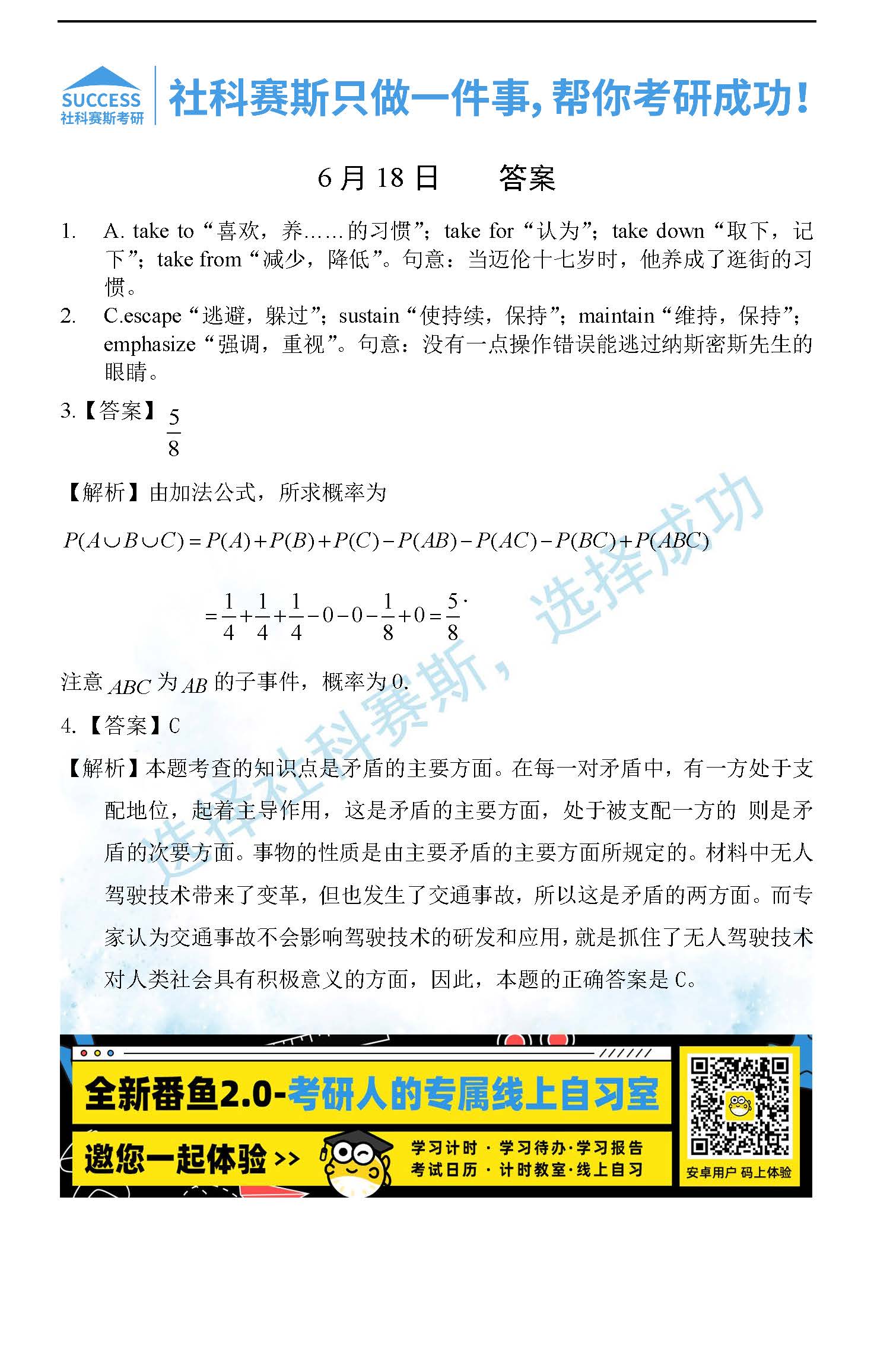 2022考研每日一练:6月18日管理类联考每日一练及答案