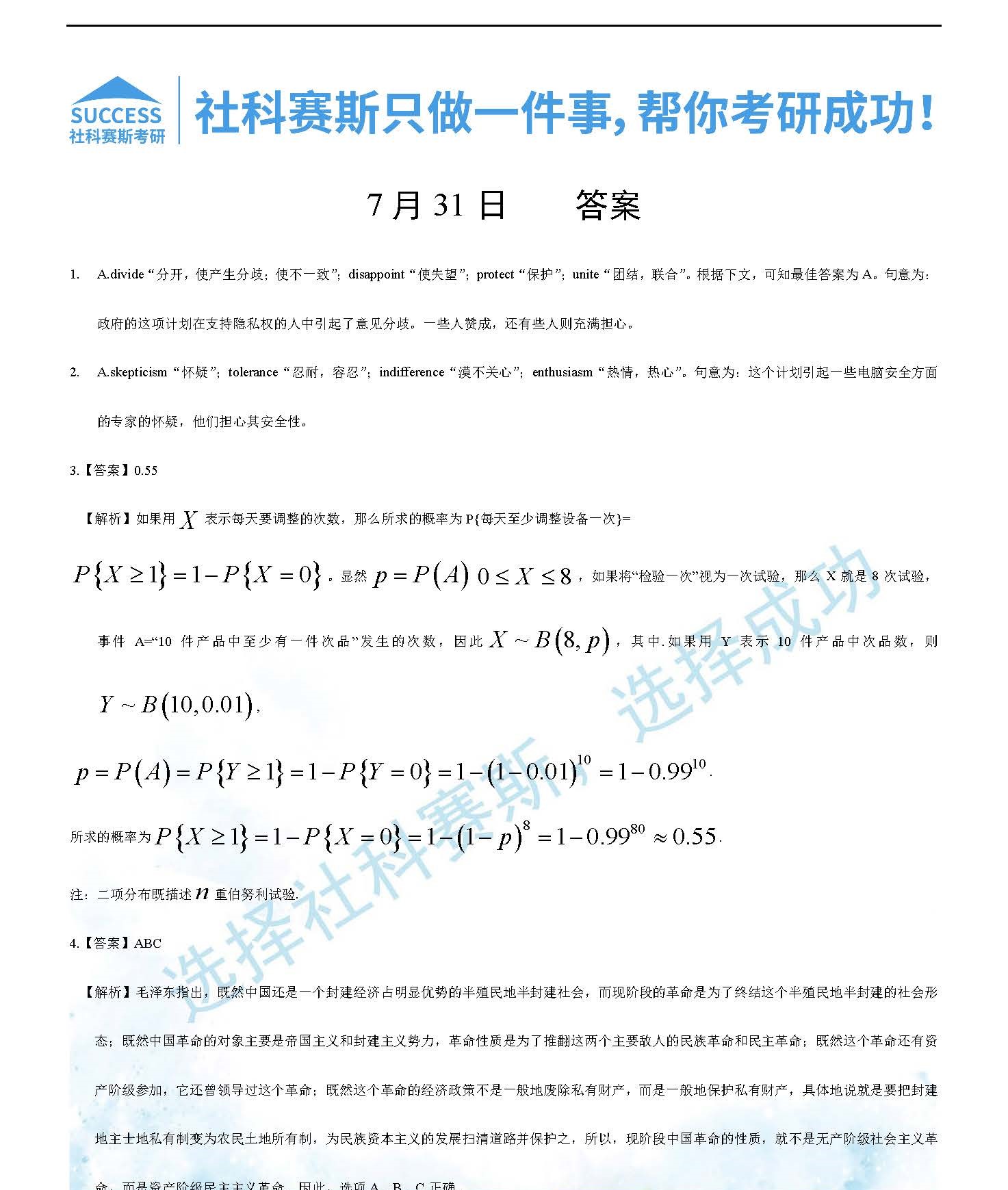 以上就是社科赛斯考研网小编为大家整理2022考研每日一练:7月31日管理类联考每日一练及答案的全部内容,希望各位考生坚持利用起来,更多每日一练内容请持续关注社科赛斯考研网