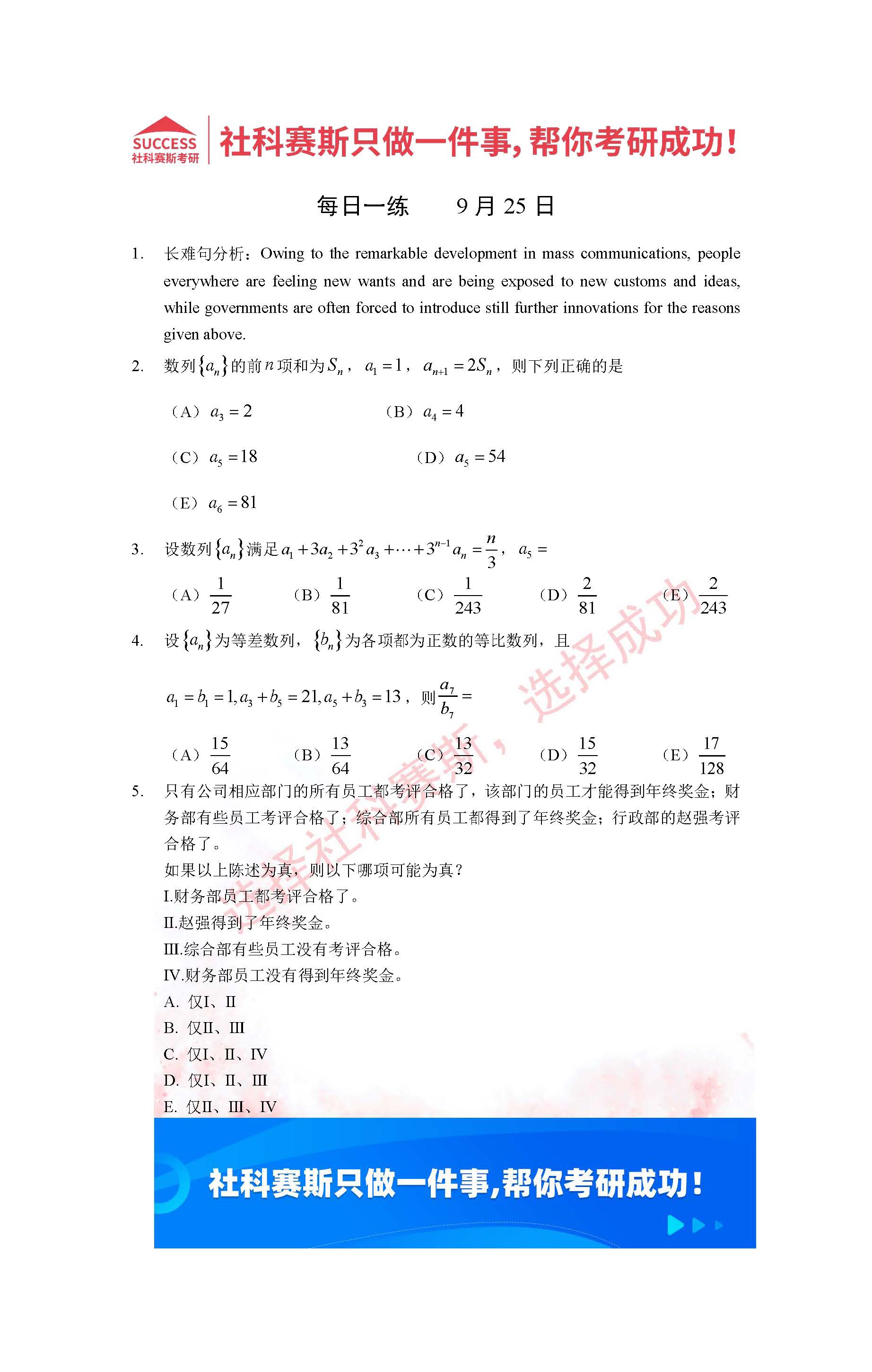 以上就是社科赛斯考研网小编为大家整理2022考研每日一练:9月25日管理类联考每日一练及答案的全部内容,希望各位考生坚持利用起来,更多每日一练内容请持续关注社科赛斯考研网