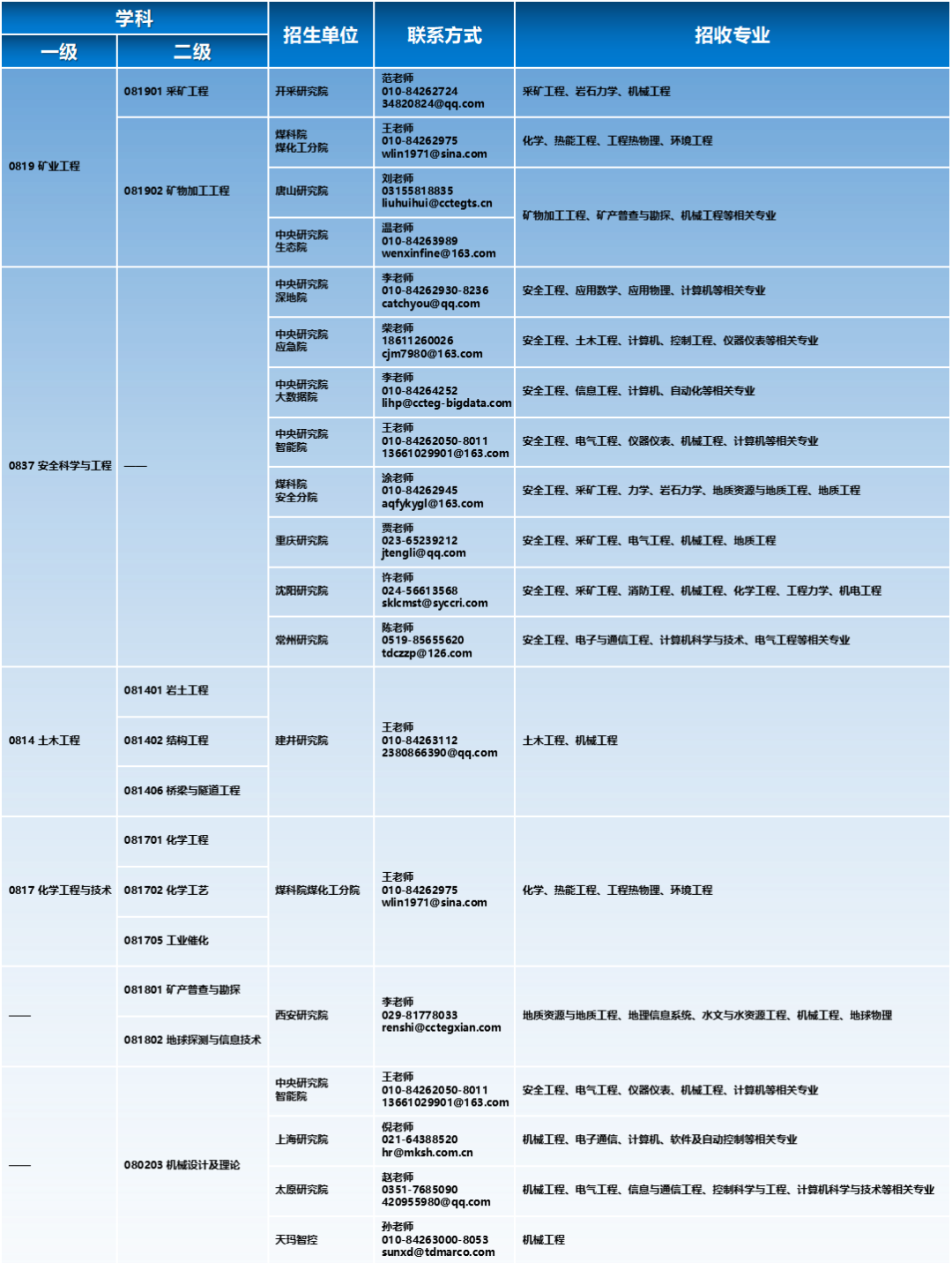 煤炭科学研究总院2024年可接收与招生学科专业相同或相近的学术型硕士考生、统考科目为英语(一)与数学(一)的专业型硕士考生的调剂申请,欢迎有意向调剂到我院的考生咨询。