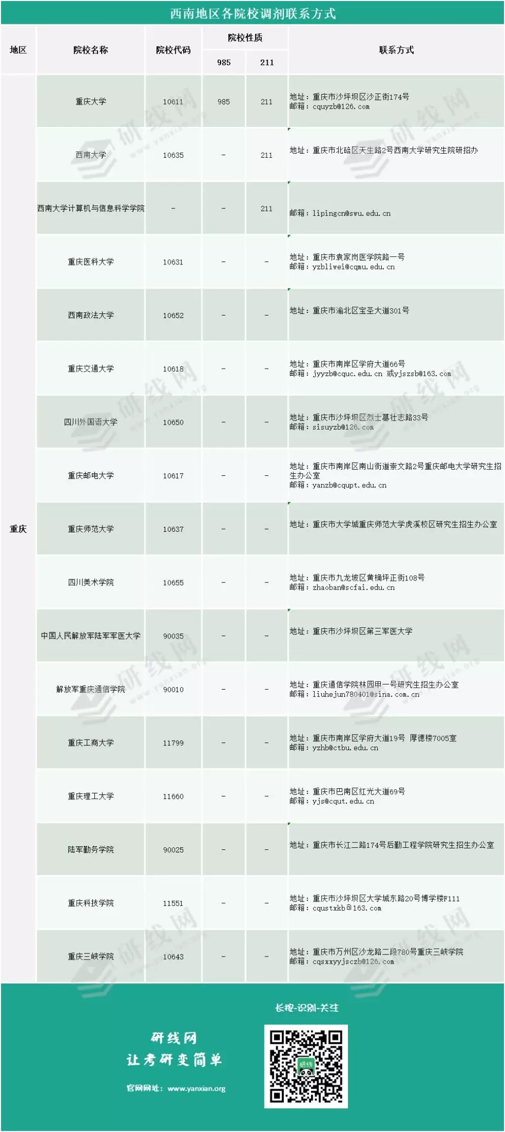 【调剂信息】西南地区院校调剂联系方式查询!