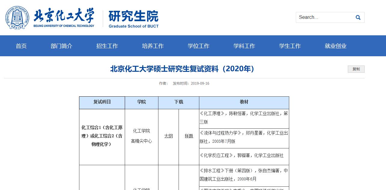考研专业课真题对于考研的考生来说非常重要,通过对近几年考题的研究,可以摸清出题规律!部分院校公布专业课真题的时间是有限的,小编将院校公布的考研专业课真题整理下来,今天给大家带来“北京化工大学硕士研究生复试资料(2020年)包含大纲、样题、参考书目”,有相关报考意愿的同学,可以关注一下!