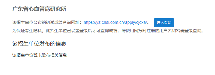 以上就是小编整理“2021考研初试成绩:广东省心血管病研究所考研初试成绩查询入口开启!初试成绩已公布!”的全部内容,想了解更多相关信息请持续关注本网站。
