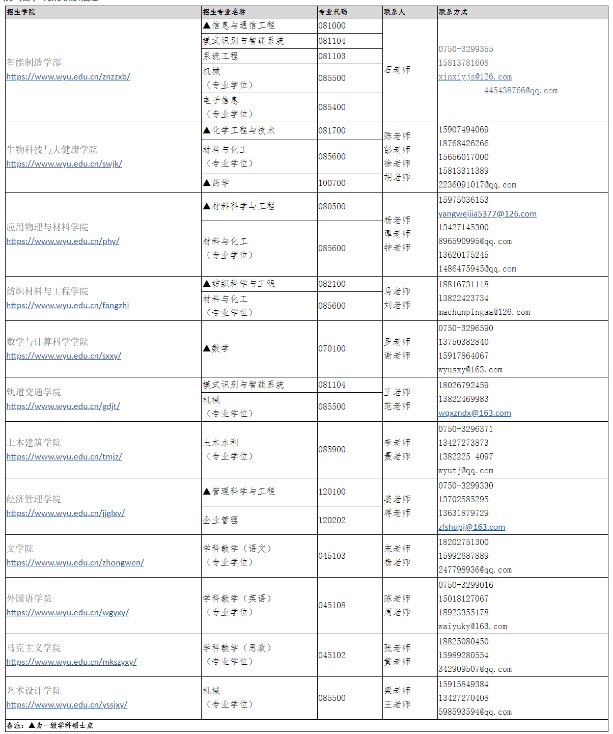 2021年五邑大学研究生各招生学院(部)调剂联系信息