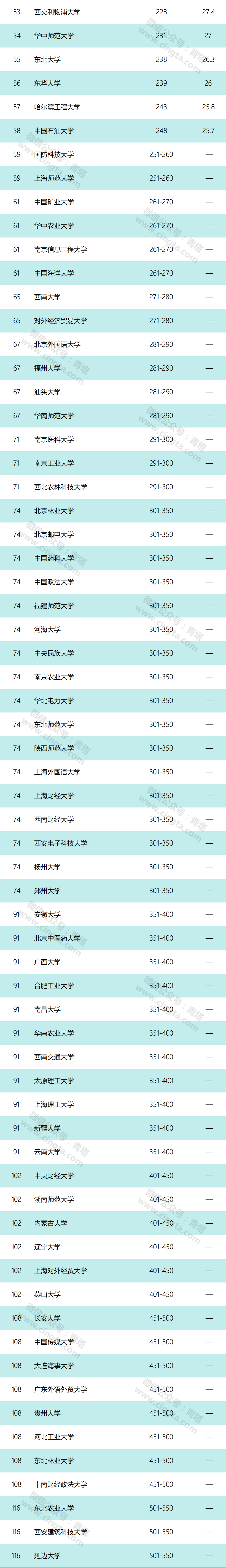中国入围的165所高校名单如下(中国矿业大学、中国石油大学和中国地质大学没有区分异地办学情况):