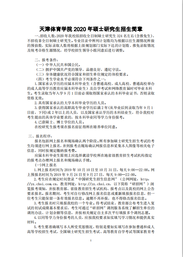 2020年硕士研究生招生简章陆续已出,今天小编给大家整理的是“天津体育学院2020年硕士研究生招生简章”的相关内容,有报考意愿的小伙伴要注意下哦!