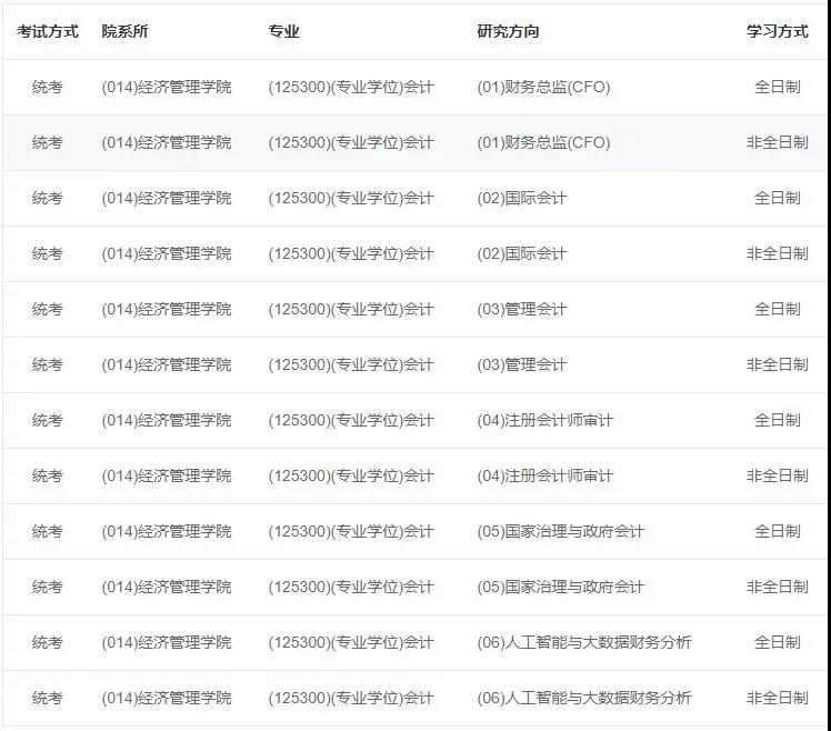 东南大学2021年会计专硕全日制计划招生2人,非全日制计划招生35人
