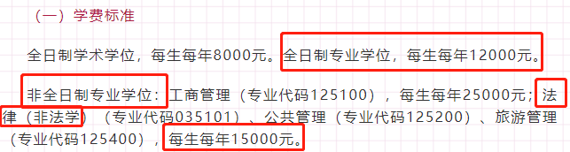 法硕(非法学)非全日制:学制为3年,学费15000元/生/年