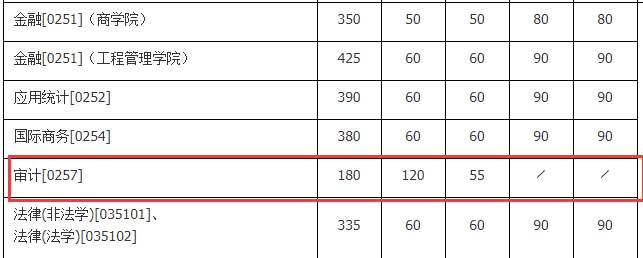 2021年审计硕士专业计划招生非全日制30人以上人数不含推免生。
