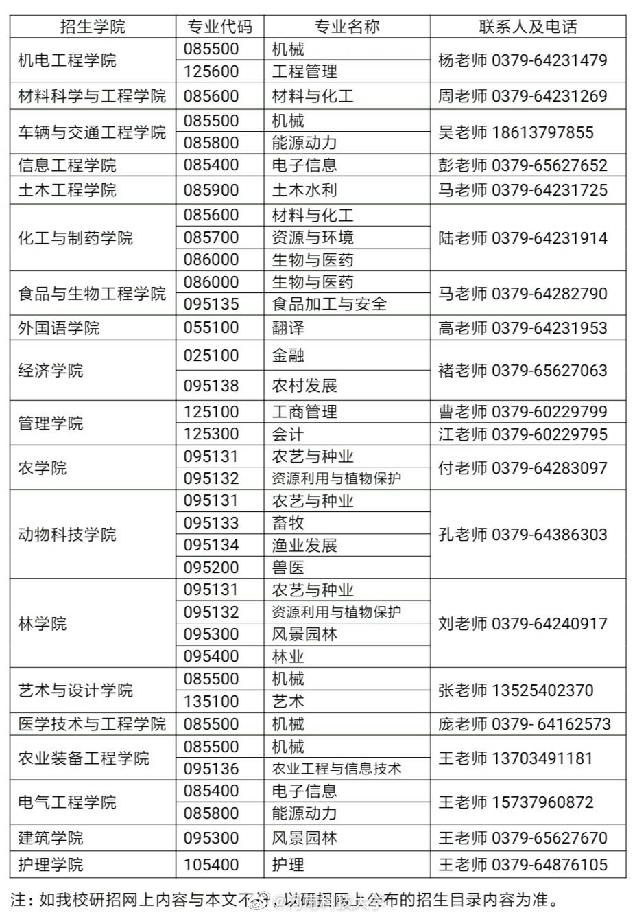 以上就是“河南科技大学2020年硕士研究生专业目录”的全部内容!